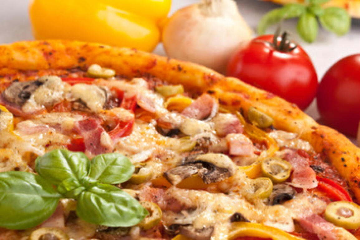 | Pepperoni (stark) Tomatsås, ost, skinka, köttfärs, paprika, lök, tabasco |